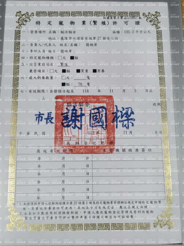 「繁殖 買賣 寄養」許可證,